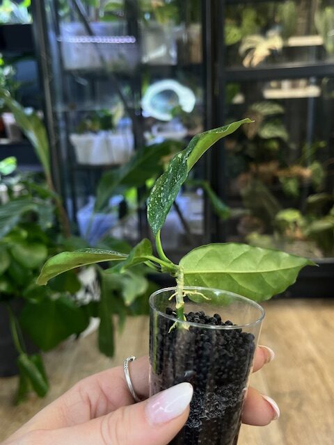 Hoya occultata splash to epifit pochodzący z tropikalnych rejonów Azji, który świetnie czuje się w warunkach domowych. W odpowiednich warunkach potrafi zakwitnąć — jej kwiaty są małe, gwiazdkowate, kremowo-różowe z intensywnym zapachem, typowym dla hoi.